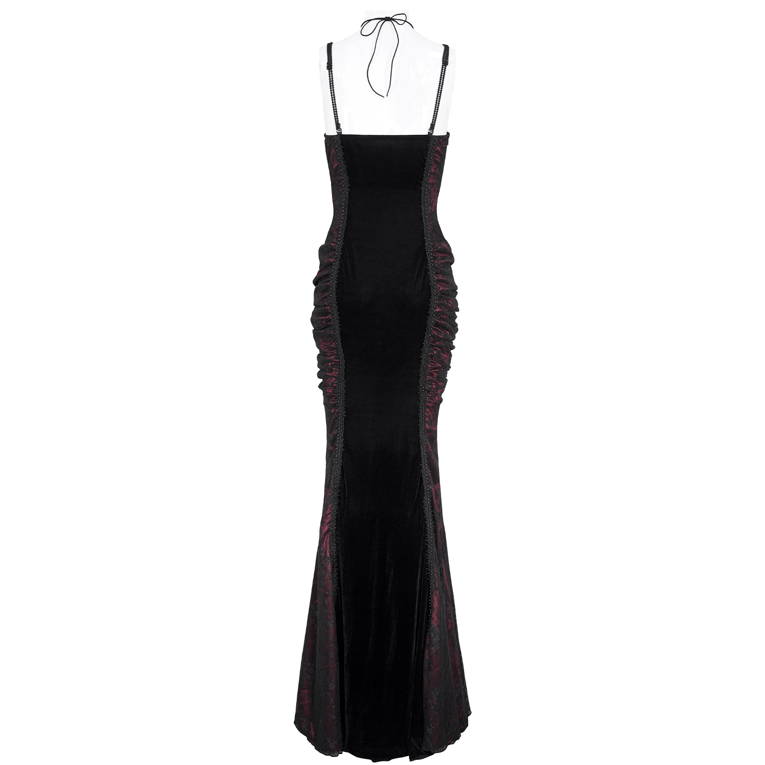 • En velours bordeaux • Décolleté en V en deux pièces sur le devant • Dentelles sur le devant et dans le dos • Chaînes décoratives • Dentelle sur l'intégralité de l'ourlet • Également disponible en...