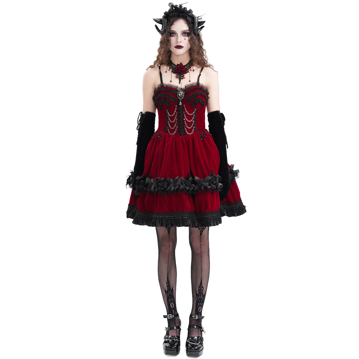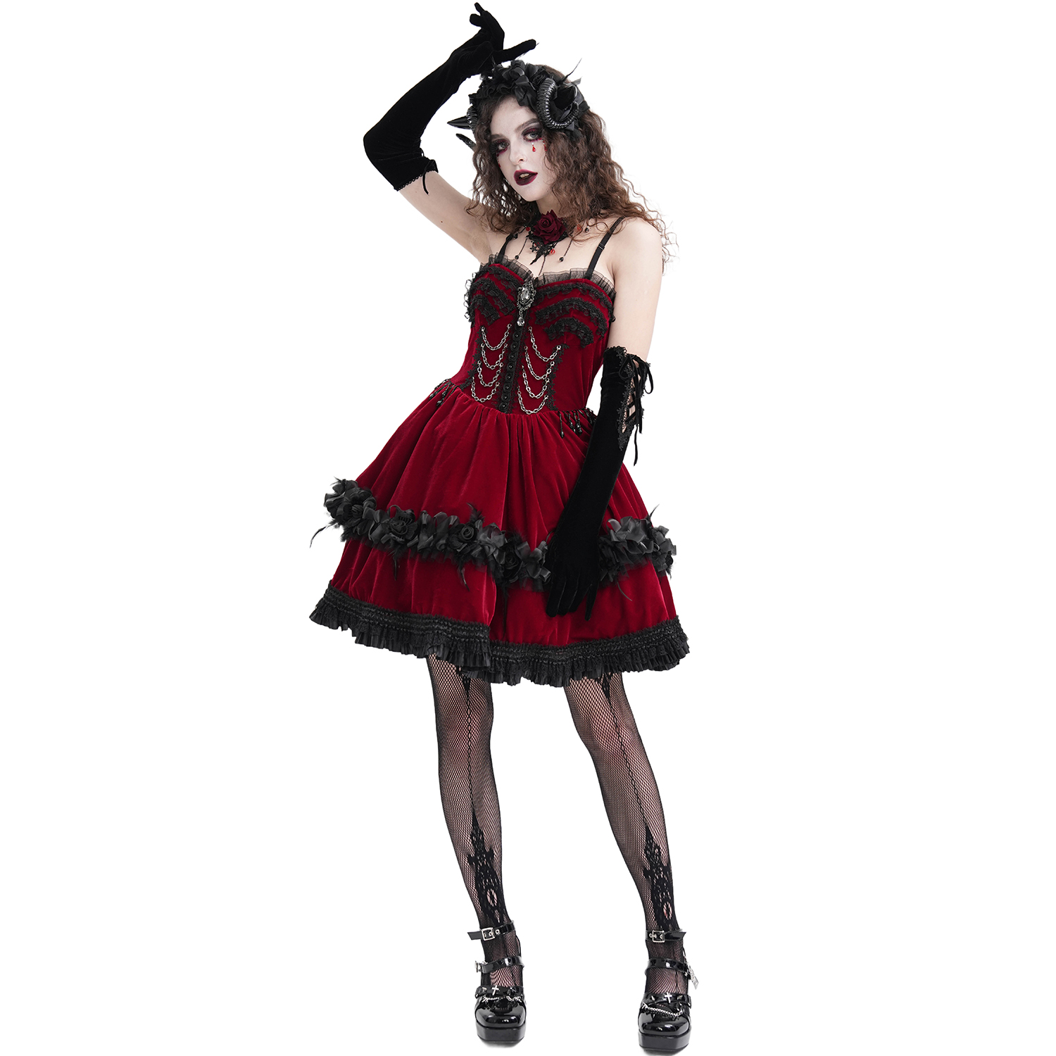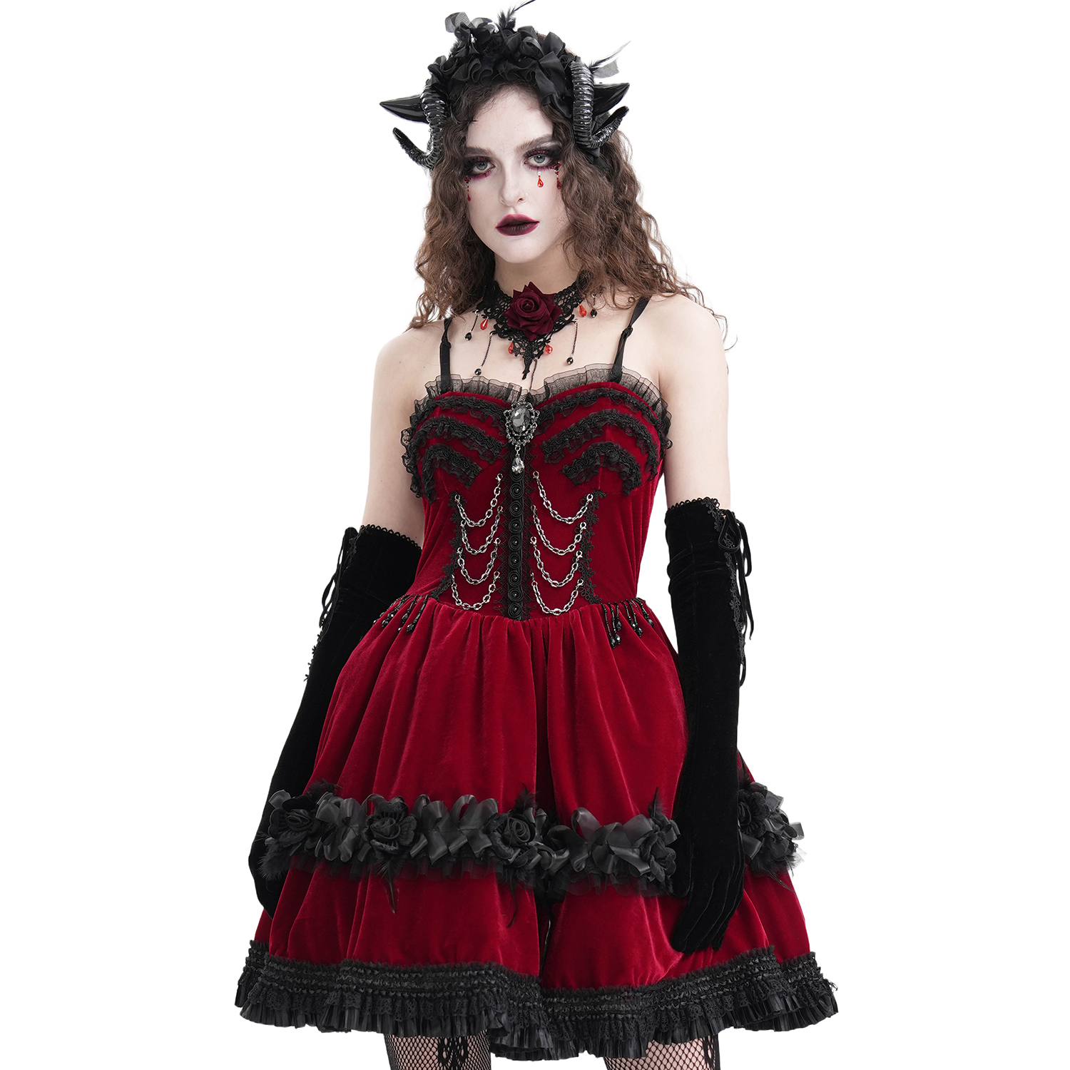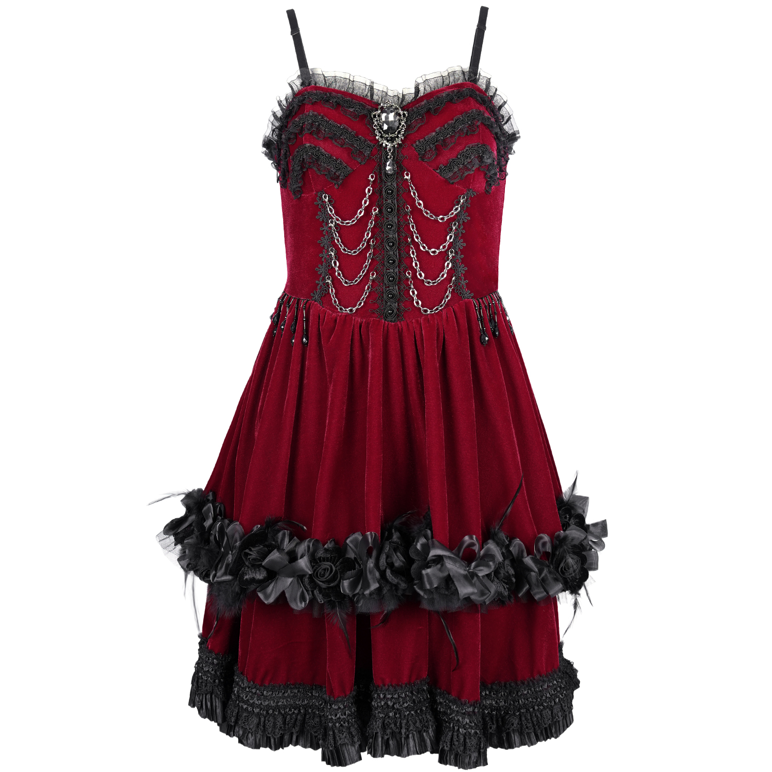 • Mini robe gothique romantique en velours noir • Deux rangées de chaînes décoratives sur la poitrine • Ornée de délicats en dentelle et de chaînes argentées • Ourlet fleuri tridimensionnel •...