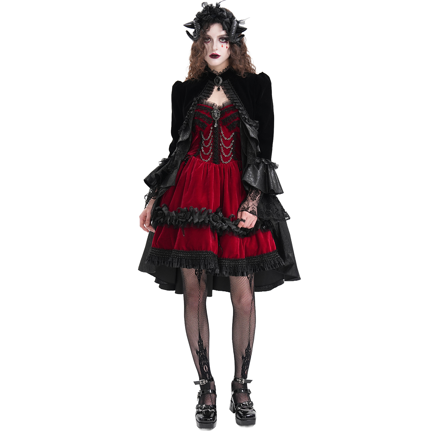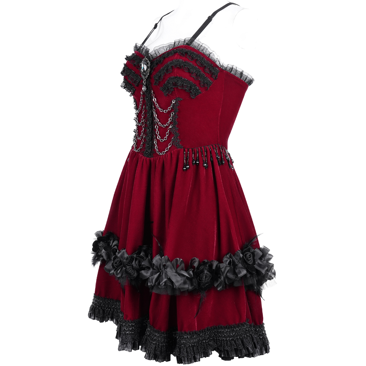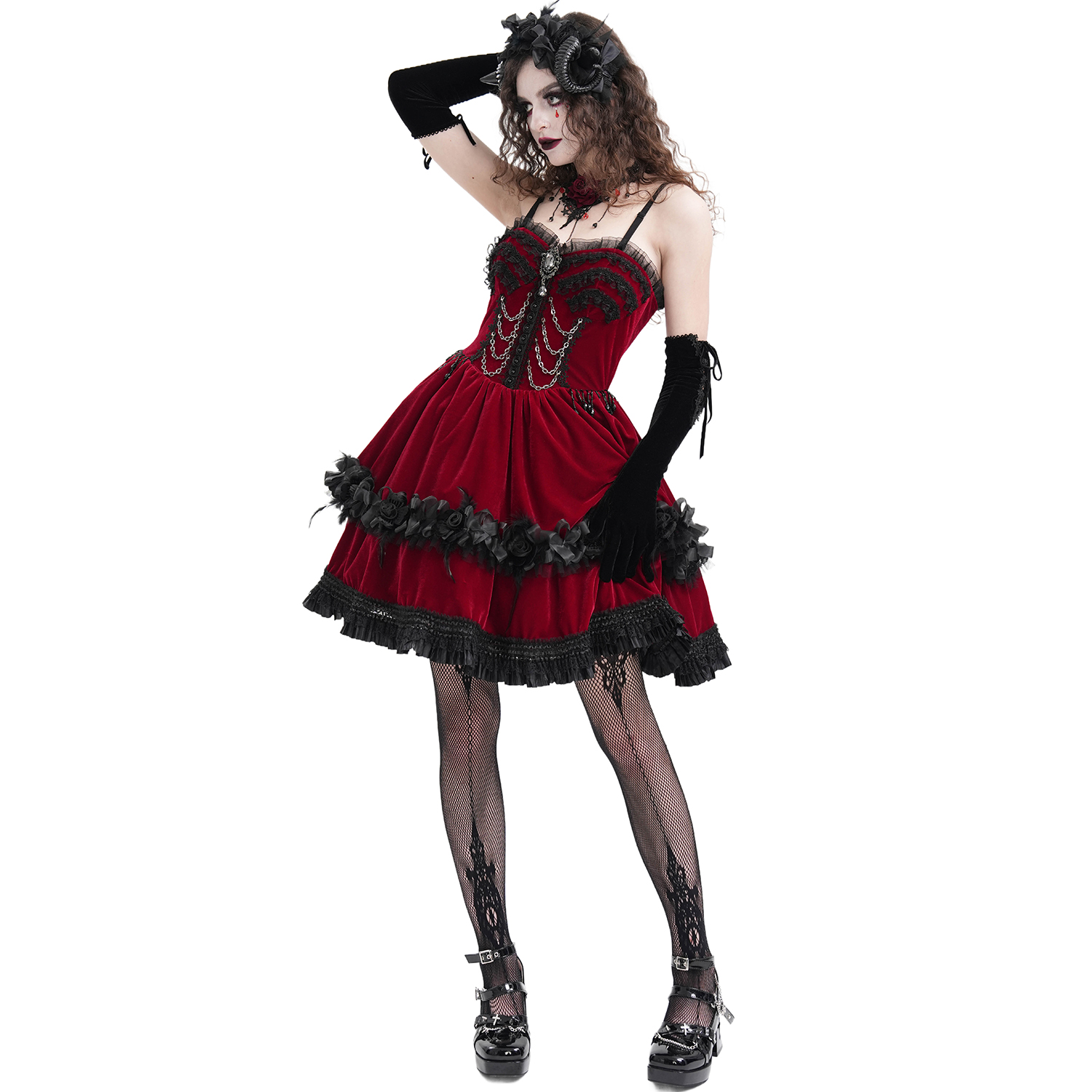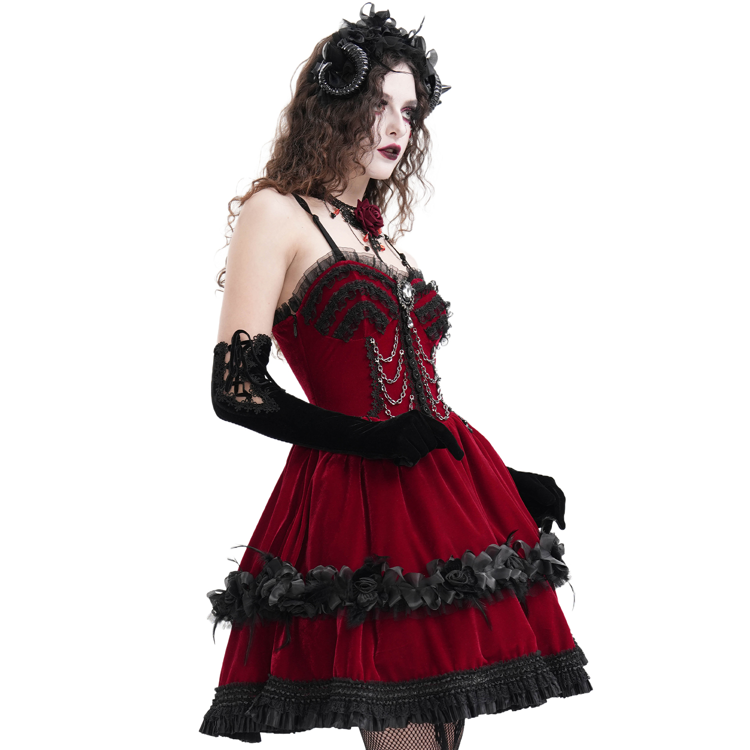 • Mini robe gothique romantique en velours noir • Deux rangées de chaînes décoratives sur la poitrine • Ornée de délicats en dentelle et de chaînes argentées • Ourlet fleuri tridimensionnel •...