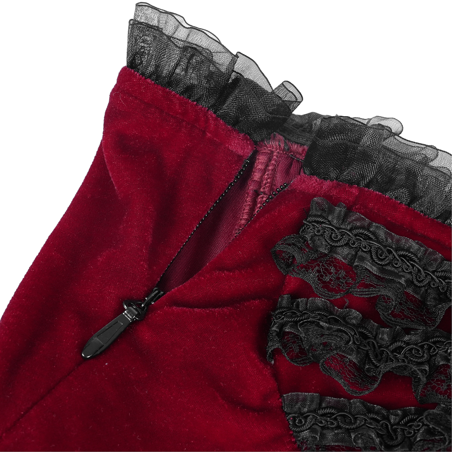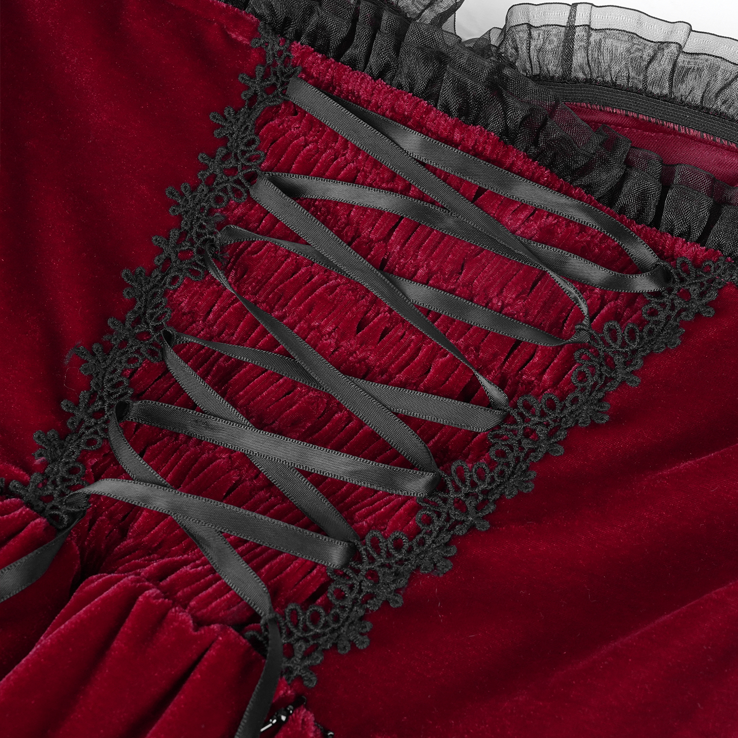 • En velours bordeaux • Décolleté en V en deux pièces sur le devant • Dentelles sur le devant et dans le dos • Chaînes décoratives • Dentelle sur l'intégralité de l'ourlet • Également disponible en...