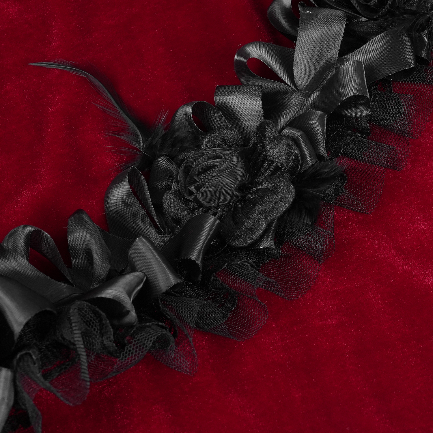 • En velours avec une bonne élasticité • Col licou en fausse fourrure avec roses noires 3D • Laçage avec dentelle sur le devant • Plumes et dentelle à l'ourlet • Col licou et poignets en fausse...