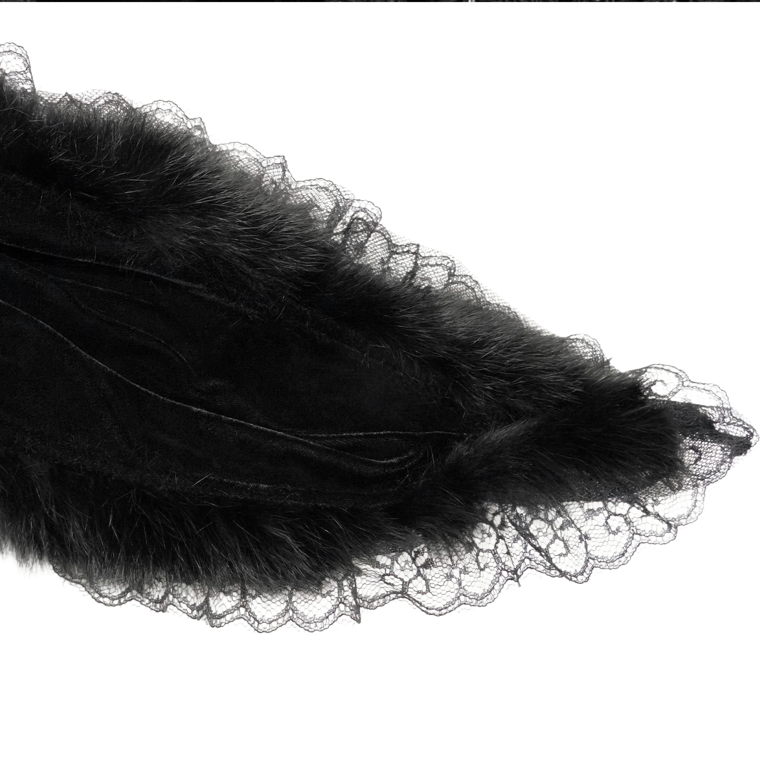 • En velours avec une bonne élasticité • Col licou en fausse fourrure avec roses noires 3D • Laçage avec dentelle sur le devant • Plumes et dentelle à l'ourlet • Col licou et poignets en fausse...