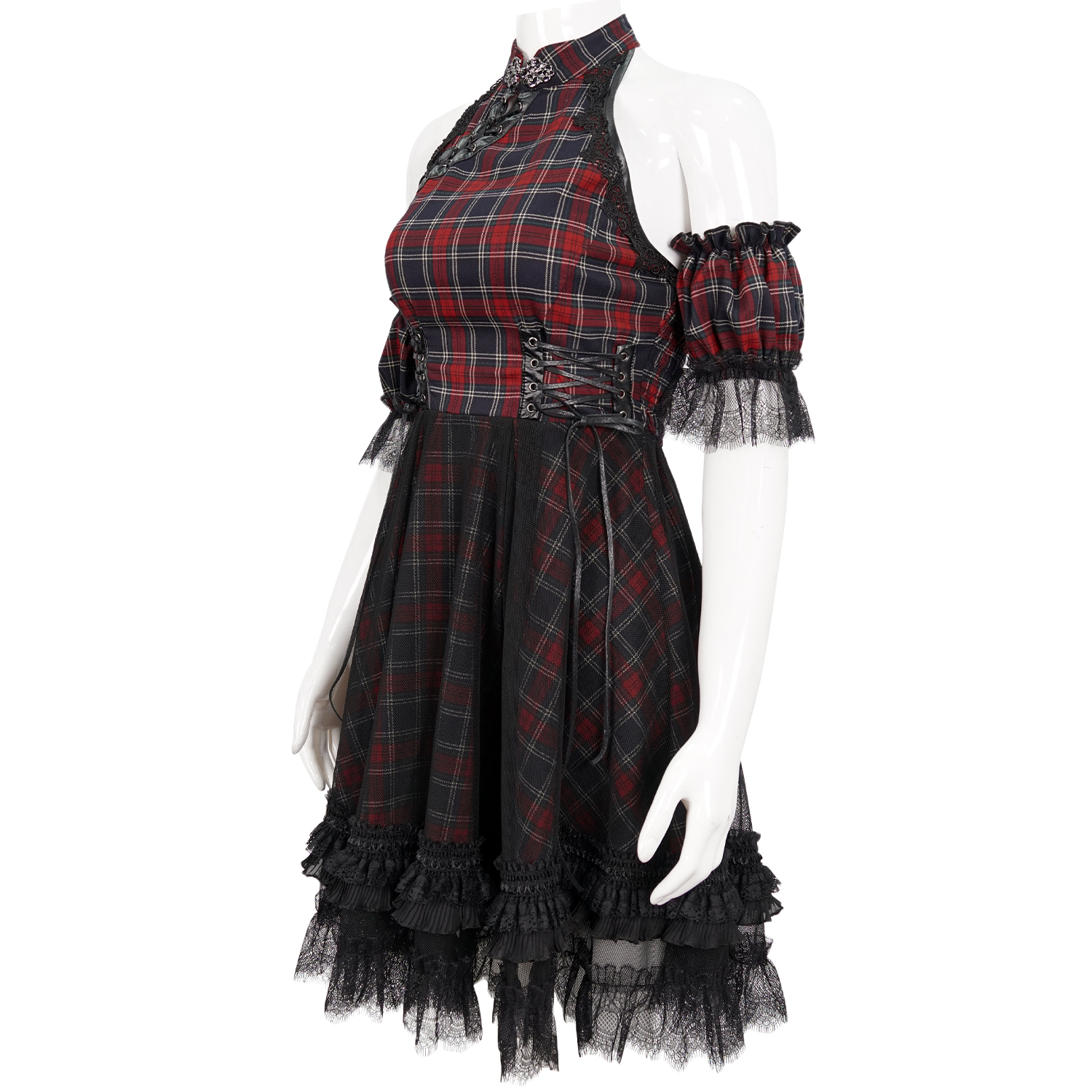 • Mini robe gothique romantique en velours rouge • Deux rangées de chaînes décoratives sur la poitrine • Ornée de délicats en dentelle et de chaînes argentées • Ourlet fleuri tridimensionnel •...