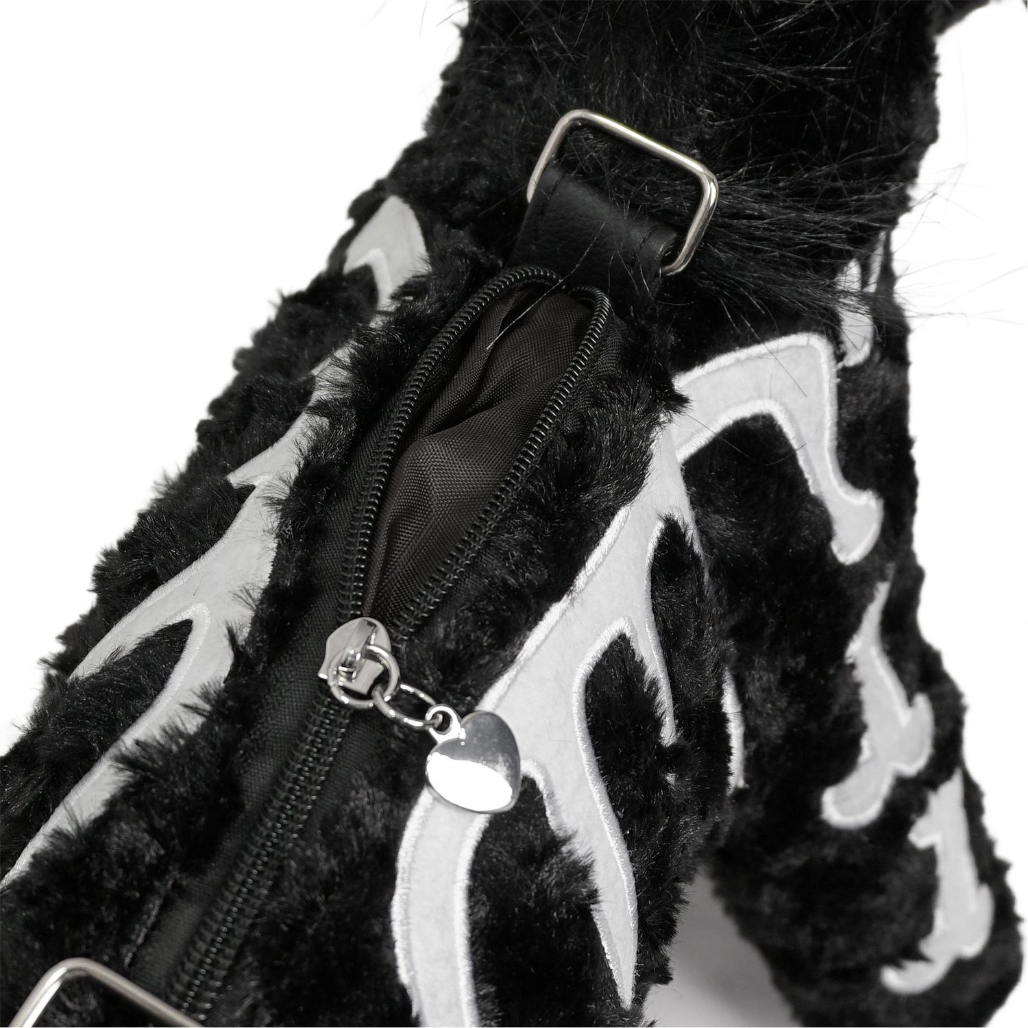 • Sac à main chat chauve-souris noir • Yeux rouges perçants • Oreilles percées en forme d'ailes de chauve-souris • Chaîne métallique a porter en bandoulière • Fermeture à glissière au dos, avec...
