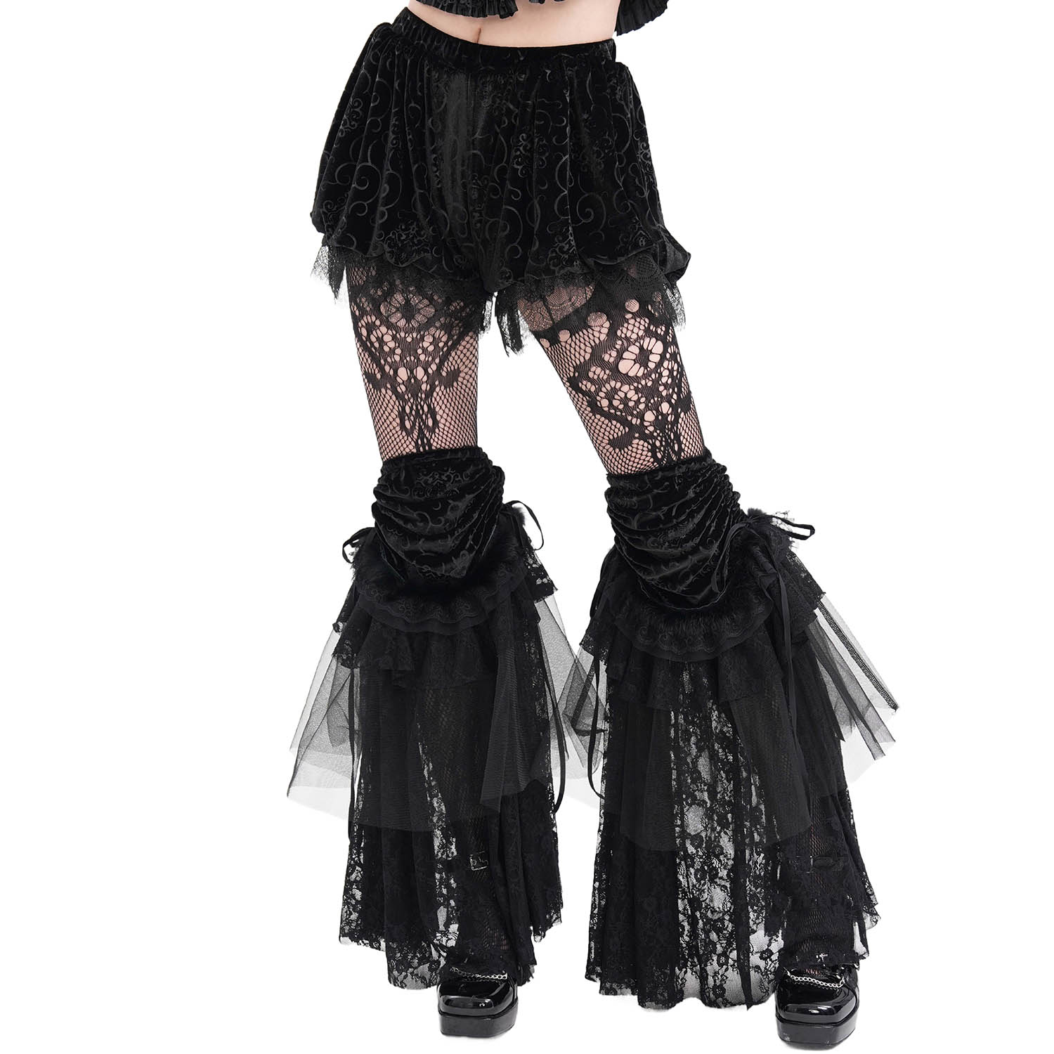 • En velours et dentelle • Superpositions de dentelle fleurie • 53% Polyester, 44% Polyamide, 3% Élasthanne By Devil Fashion GUIDE DES TAILLES EN CENTIMÈTRES TAILLES GENOUX LONGUEUR XS/L...