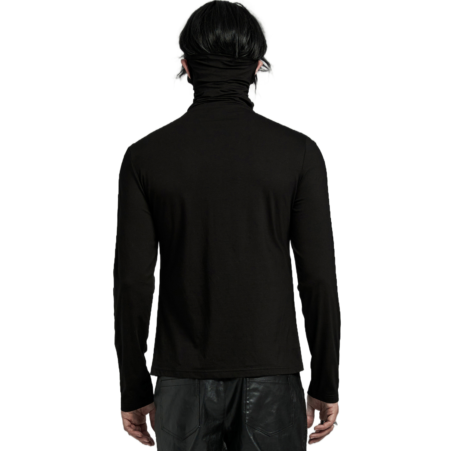 Superbe haut de style post apocalyptique pour hommes • En polyester noir, doux et extensible • Col écharpe • Boutons pression sur l'épaule gauche • Parties déchiquetées • Ourlet asymétrique •...