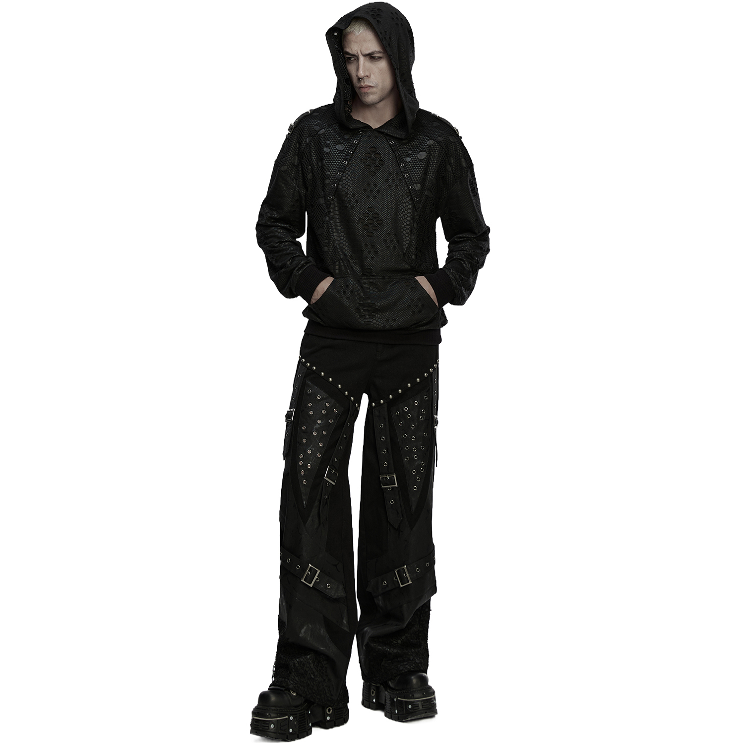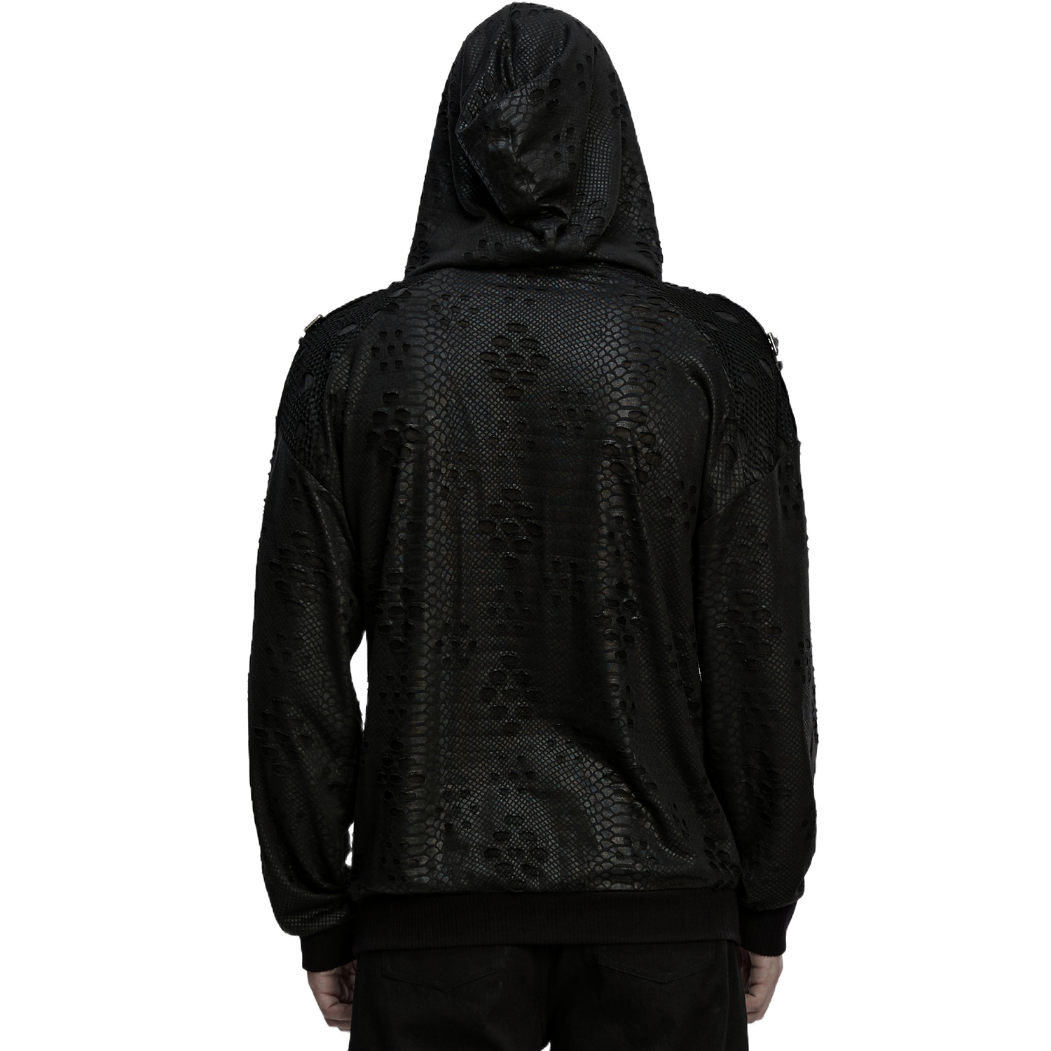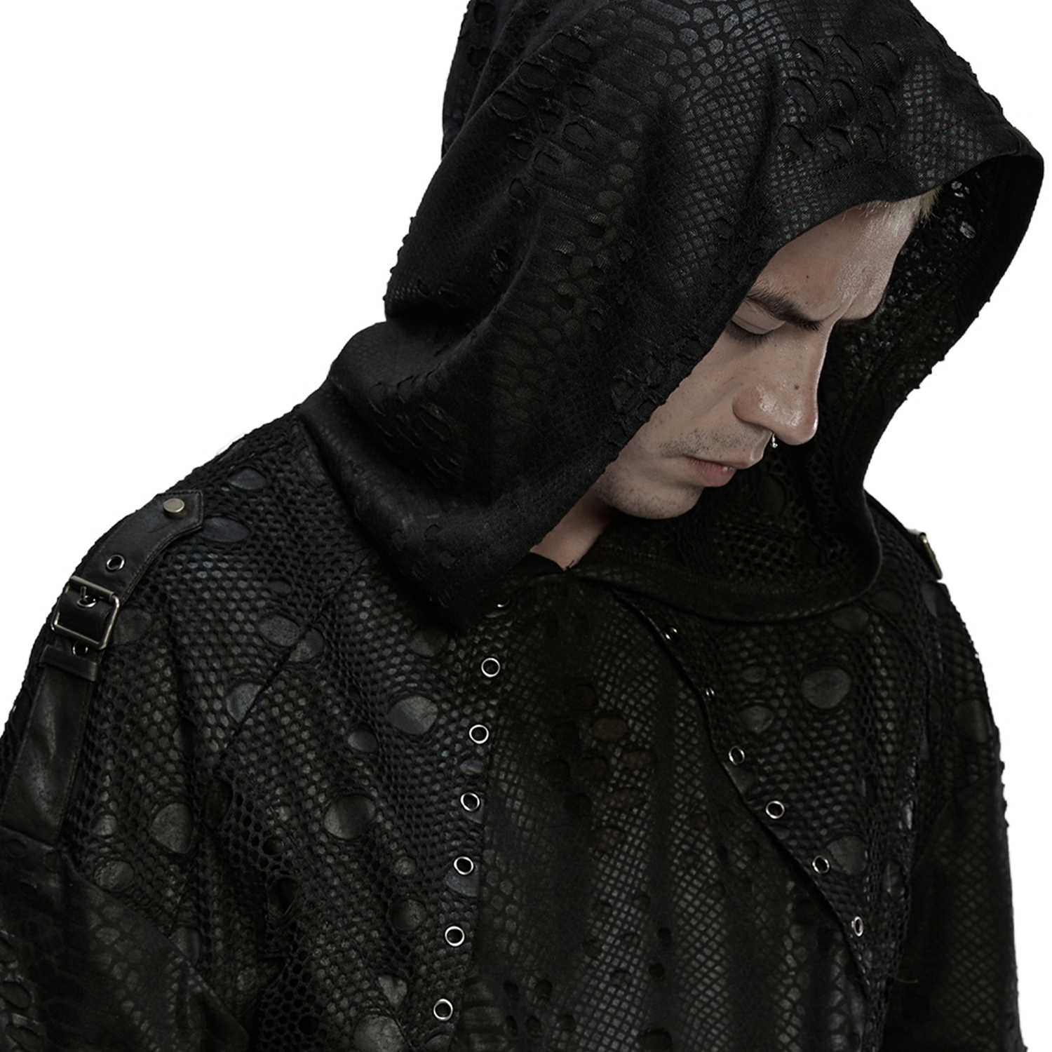 Top de style post apocalyptique à capuche et manches longues pour hommes • Dans un mélange de polyester noir de qualité supérieure et de rayonne • Tissu superposé comprenant une base transparente...