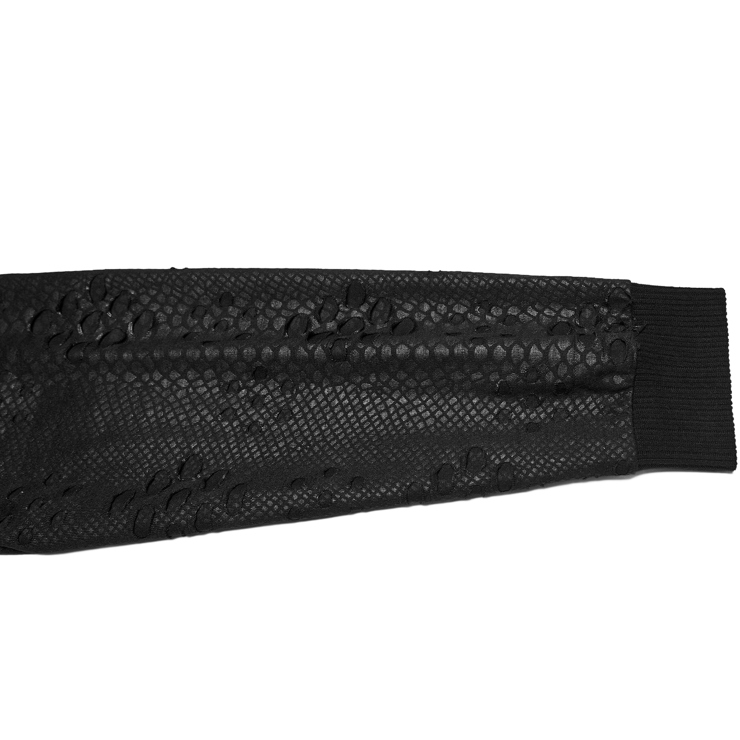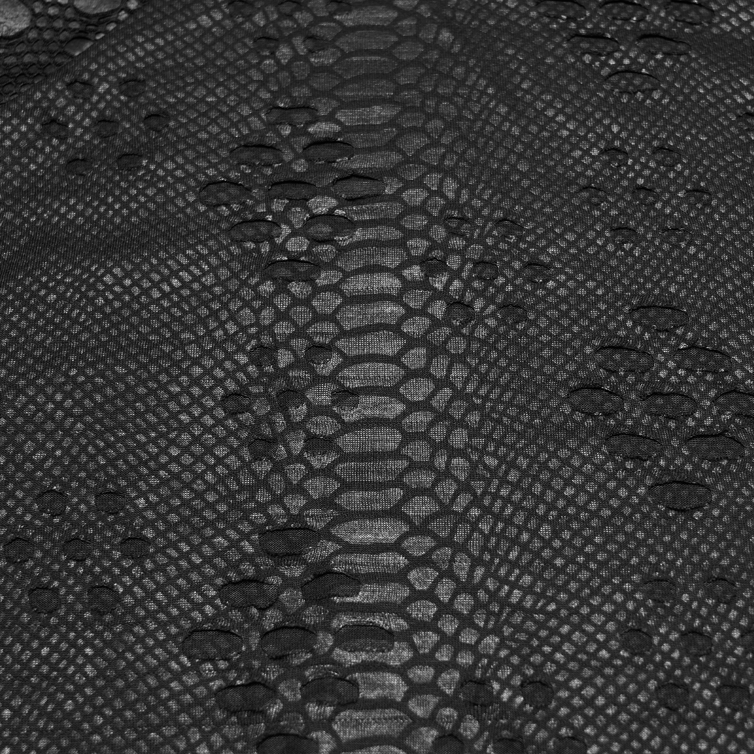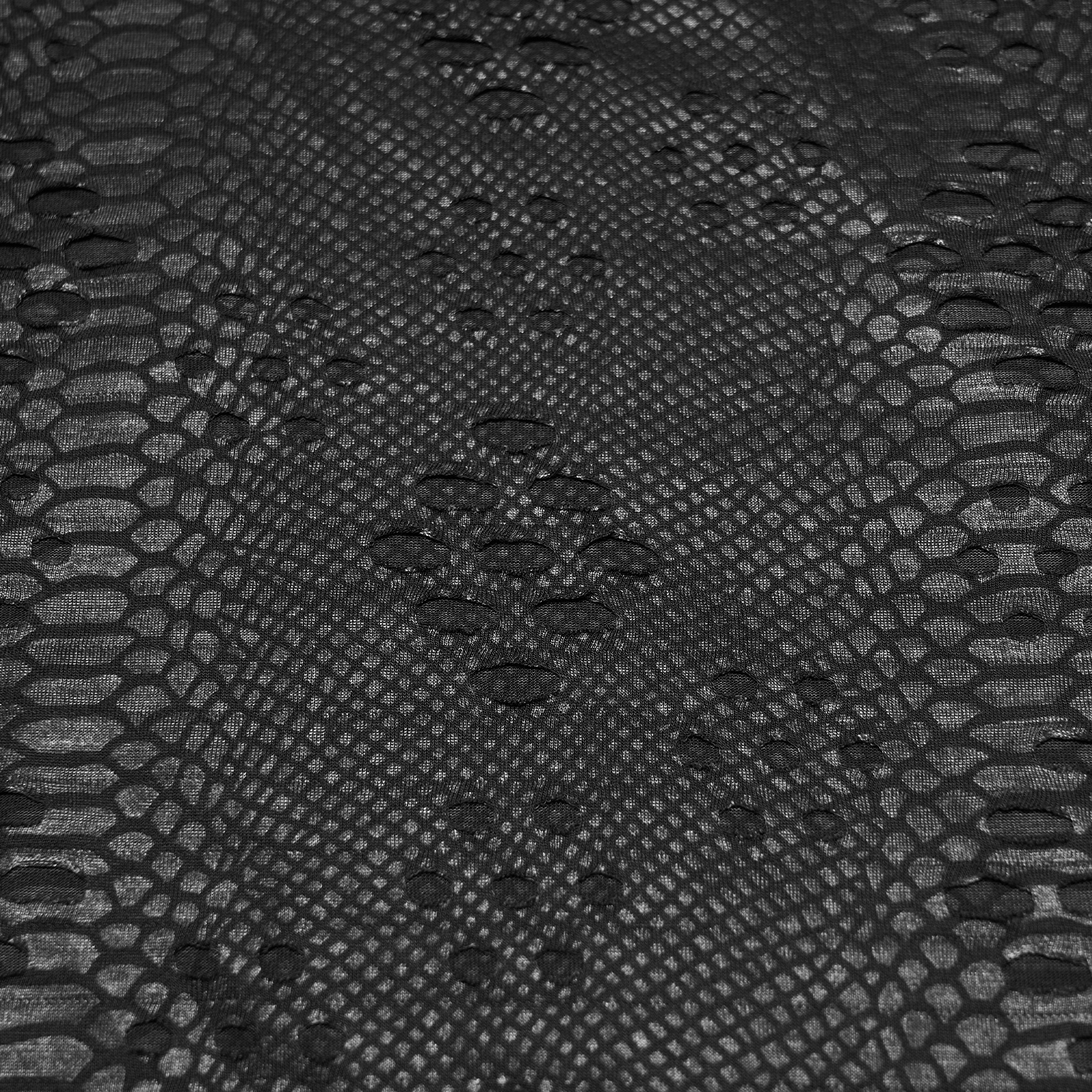 • En maille élastique effilochée et trouée sur un tissu façon peau de serpent