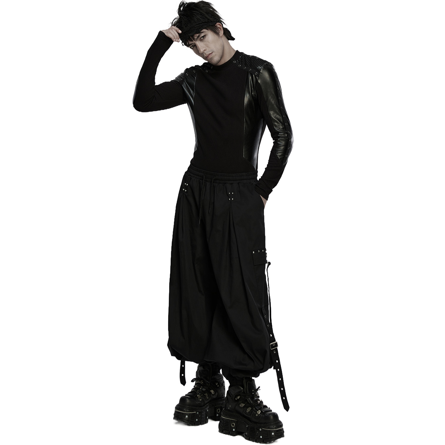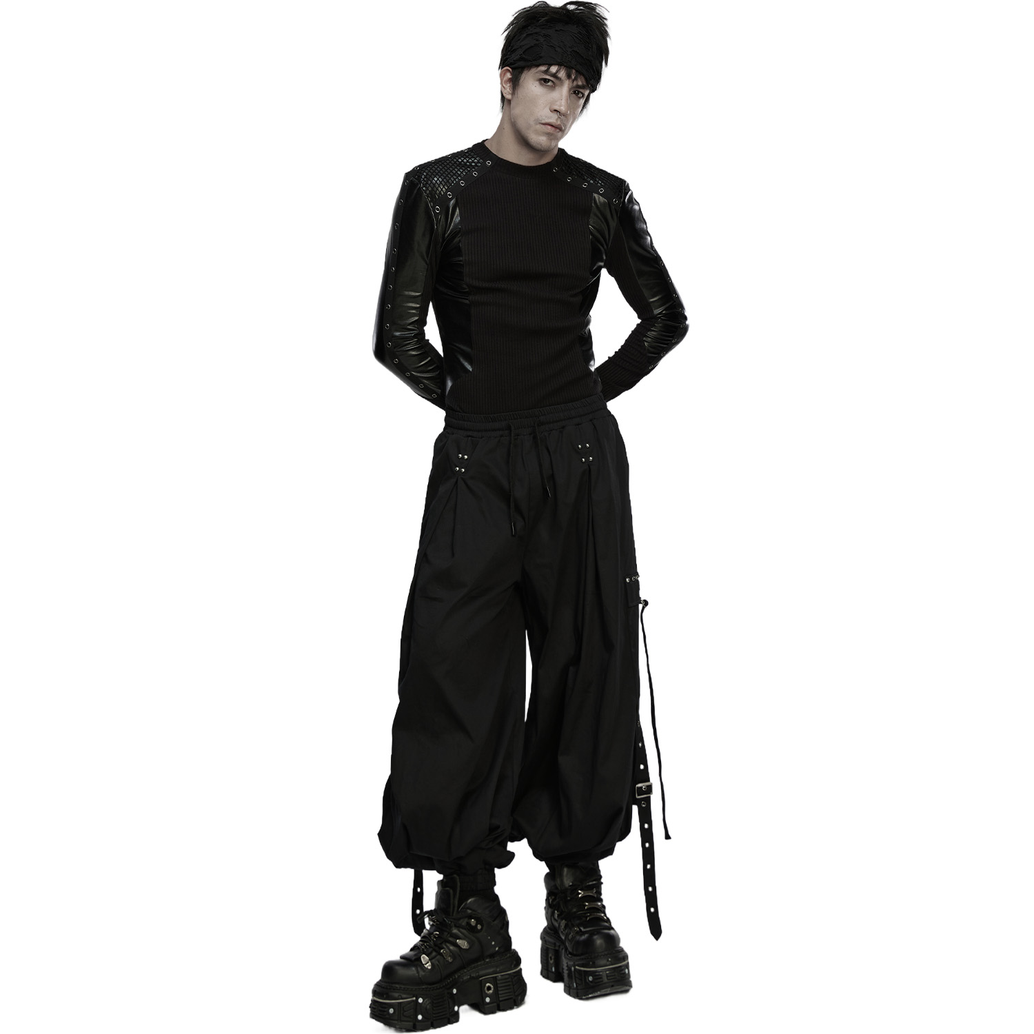 • Pantalon cyberpunk à revers • En sergé élastique • Taille élastique pour un confort optimal • Poches latérales plaquées et sangles ajustables • Rivets et motifs métalliques sur le haut du...