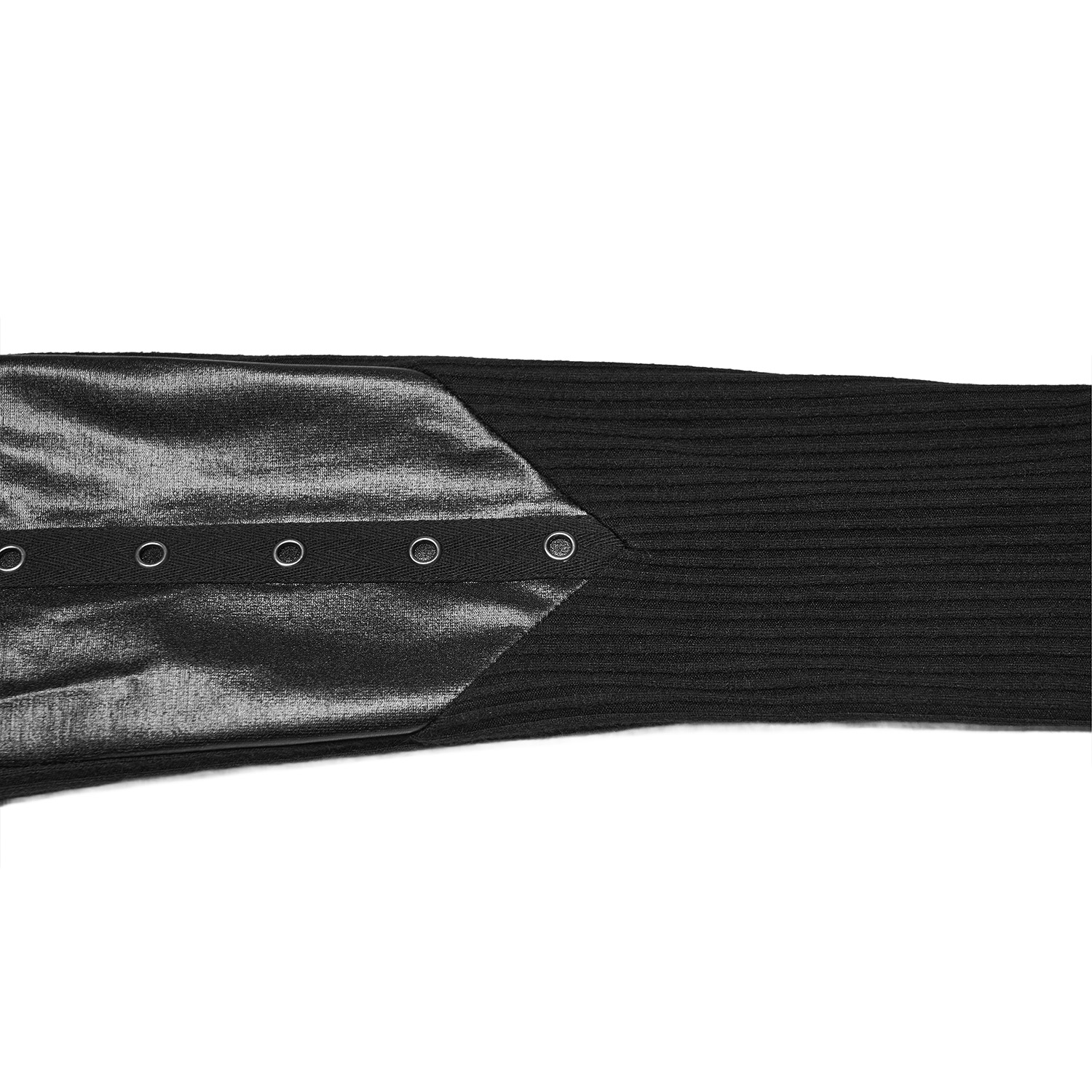 • En tissu élastique noir • Épissage symétrique des trous à l'avant • Chaînes métalliques pour plus de personnalité et d'originalité • Bandes en simili cuir avec œillets sur les deux manches •...