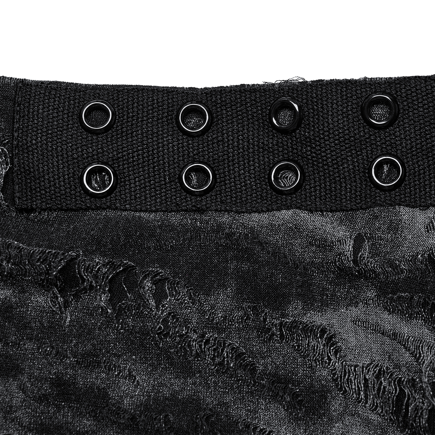 • En tissu déchiré et résille • Œillets et clous disposés de manière aléatoire • Tissu 1 : 65% Polyester, 35% Viscose • Tissu 2 : 95% Polyester, 5% Élasthanne By Punk Rave GUIDE DES TAILLES EN...