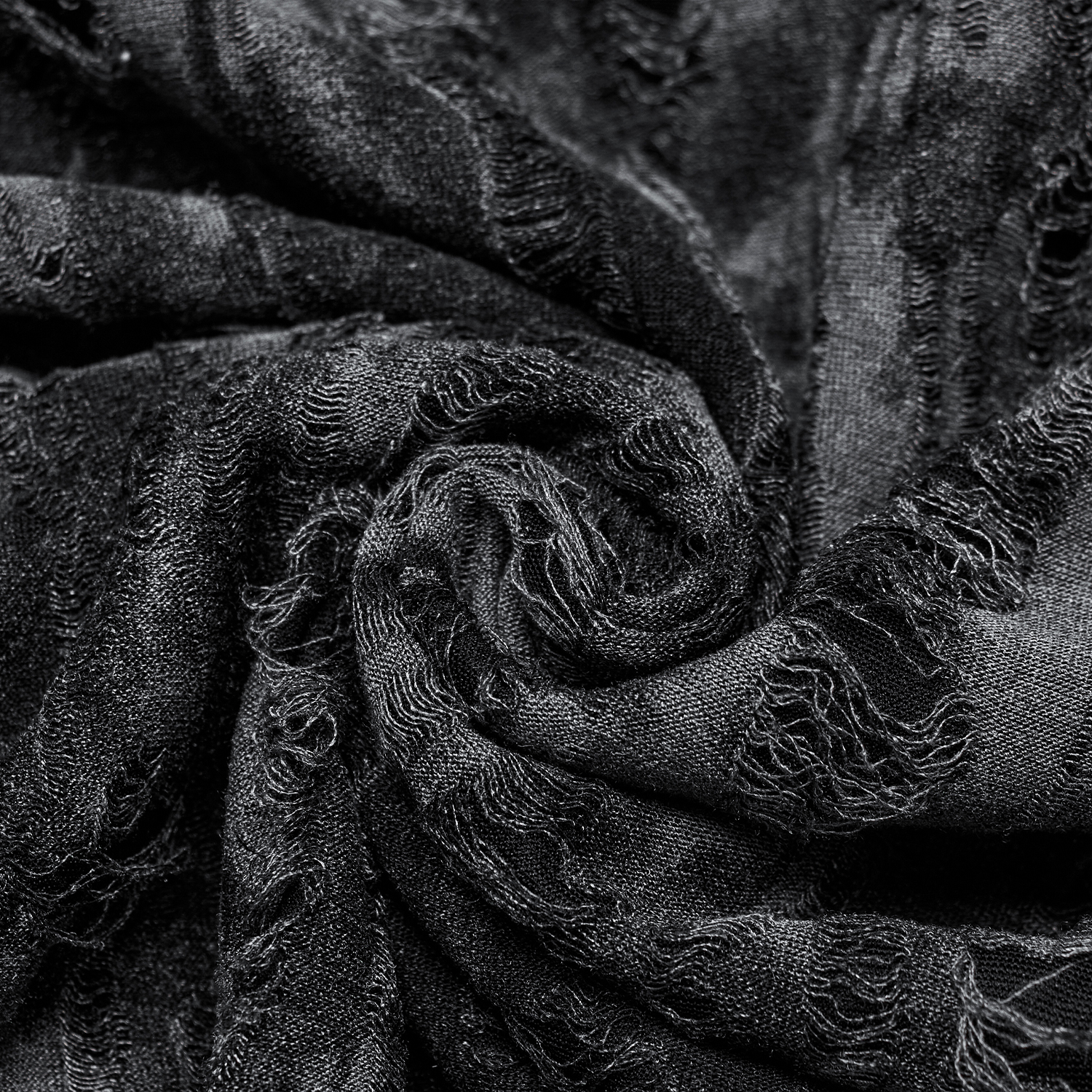 • En tissu noir déstructuré en lambeaux • Col en V • Maille sur les épaules, bordée de simili cuir craquelé • Sangles décoratives sur les épaules • Rivets métalliques • Franges aléatoires • 87%...