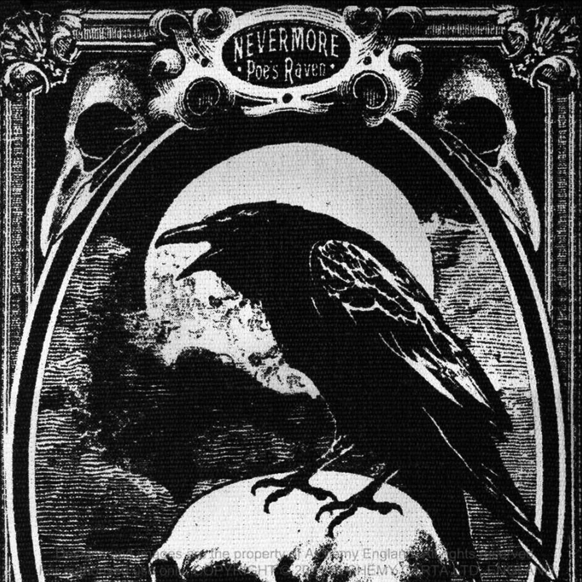 • L'œuvre d'art emblématique d'Alchemy 'Poe's Raven - Nevermore' magnifiquement présentée sur ce superbe tapis tissé à la main.