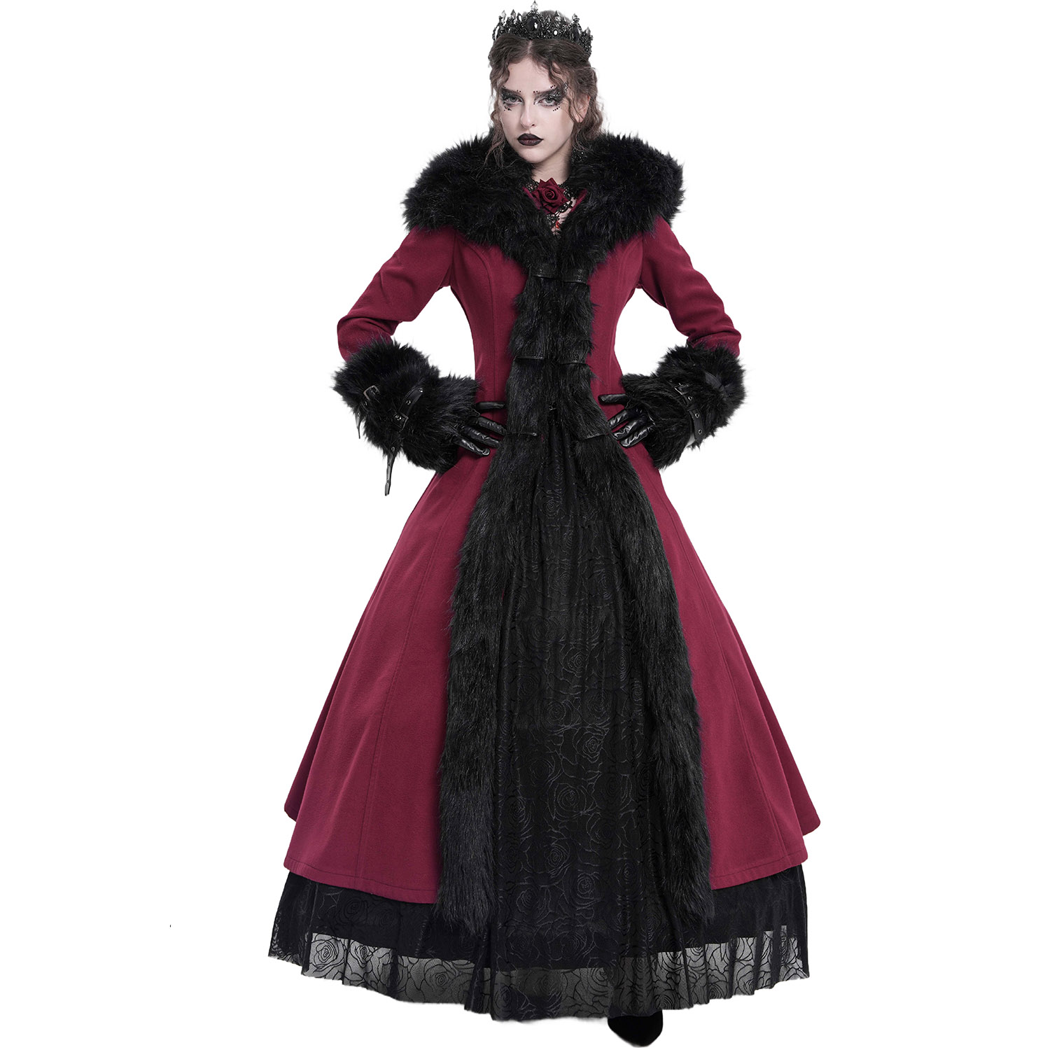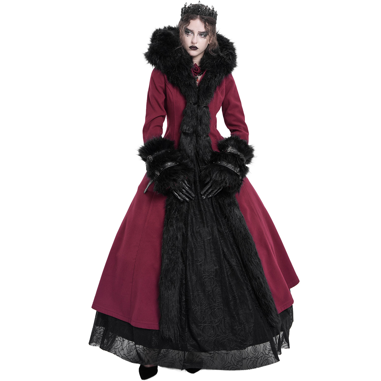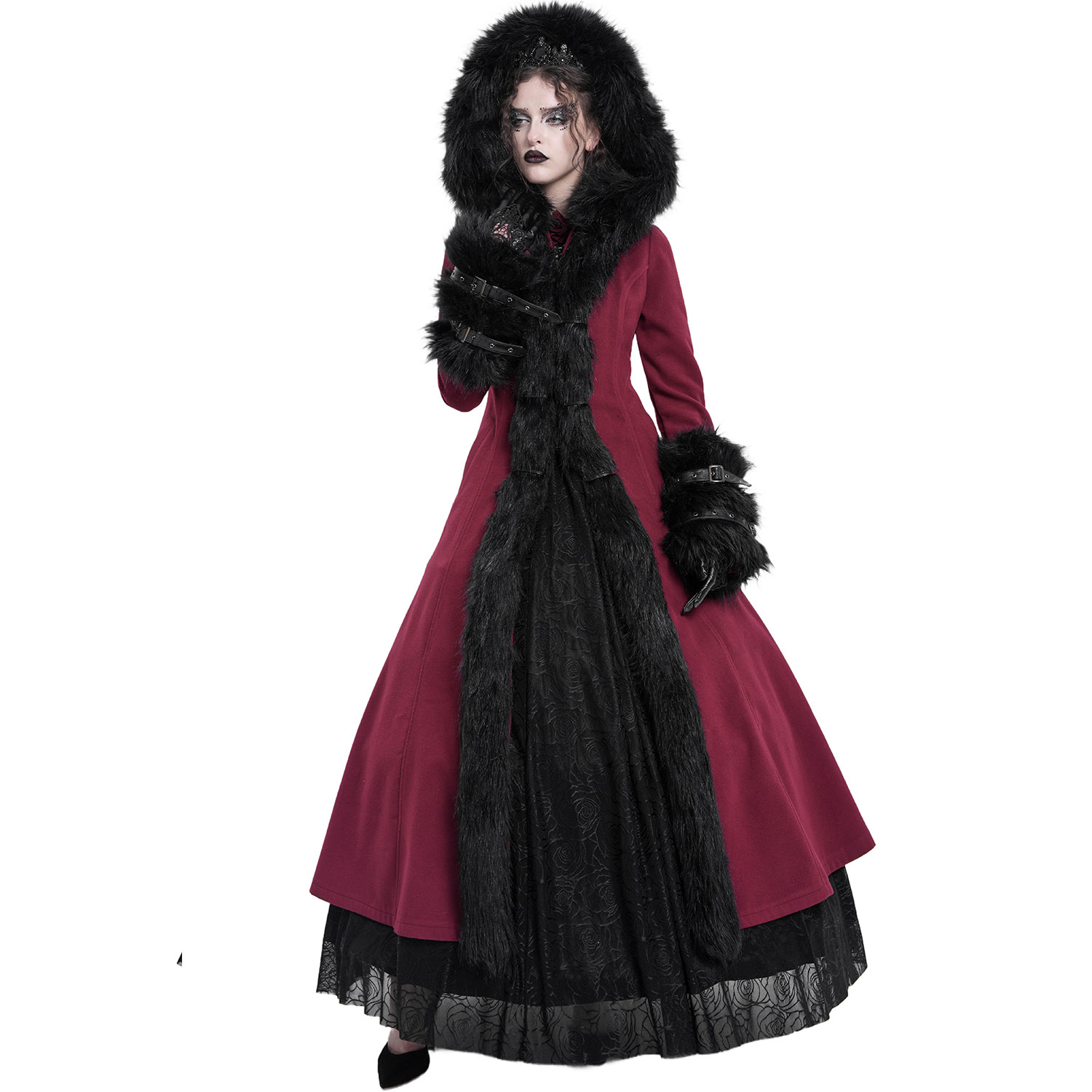 Superbe long manteau d'hiver à capuche de style Gothic Lolita