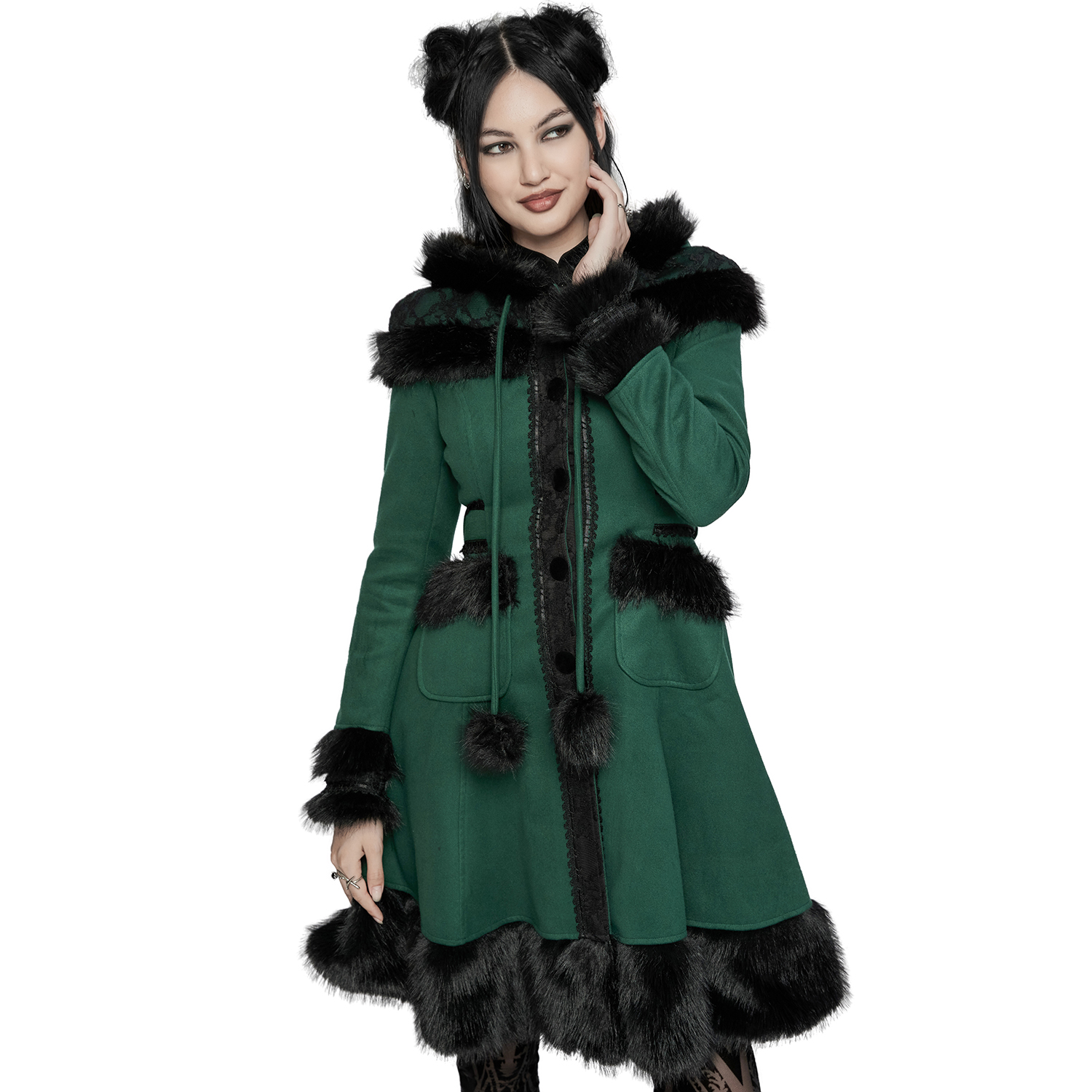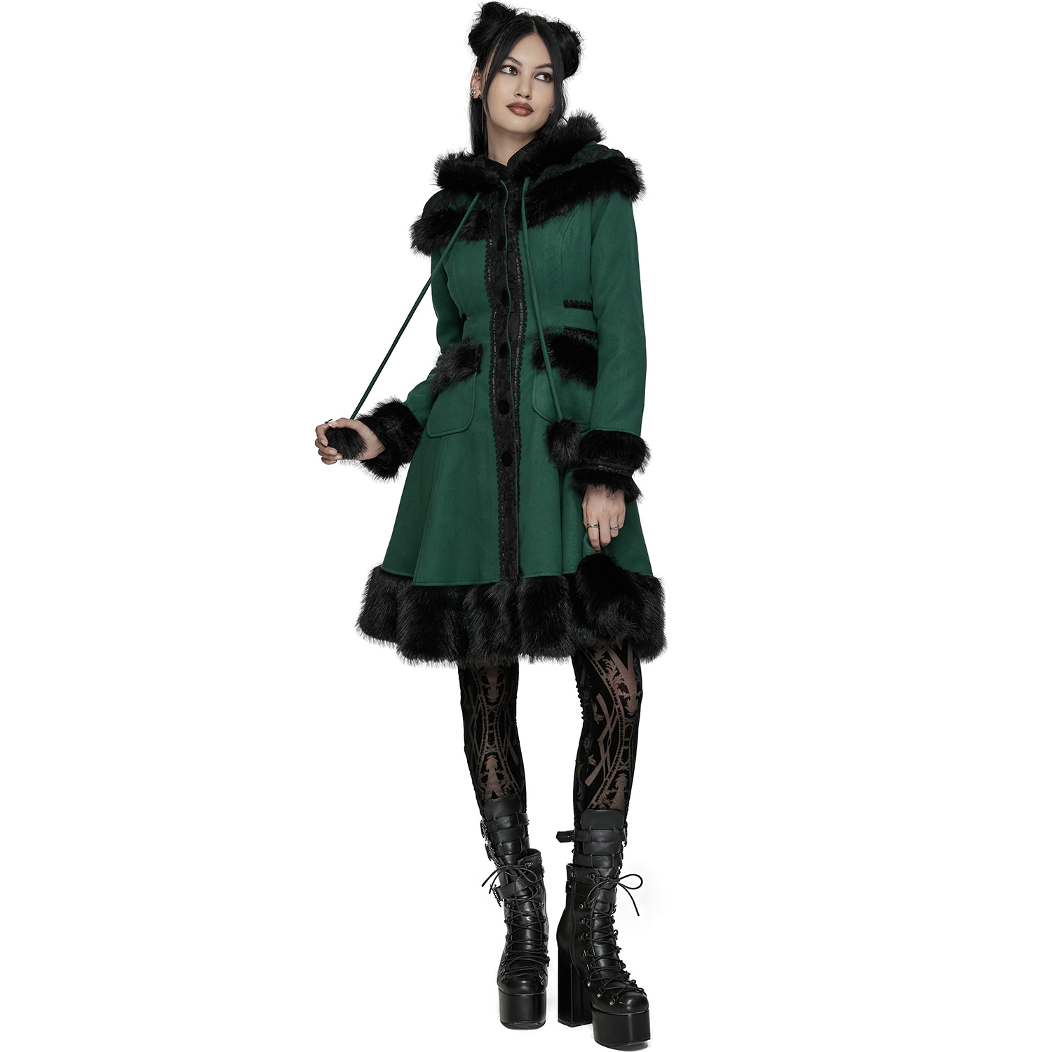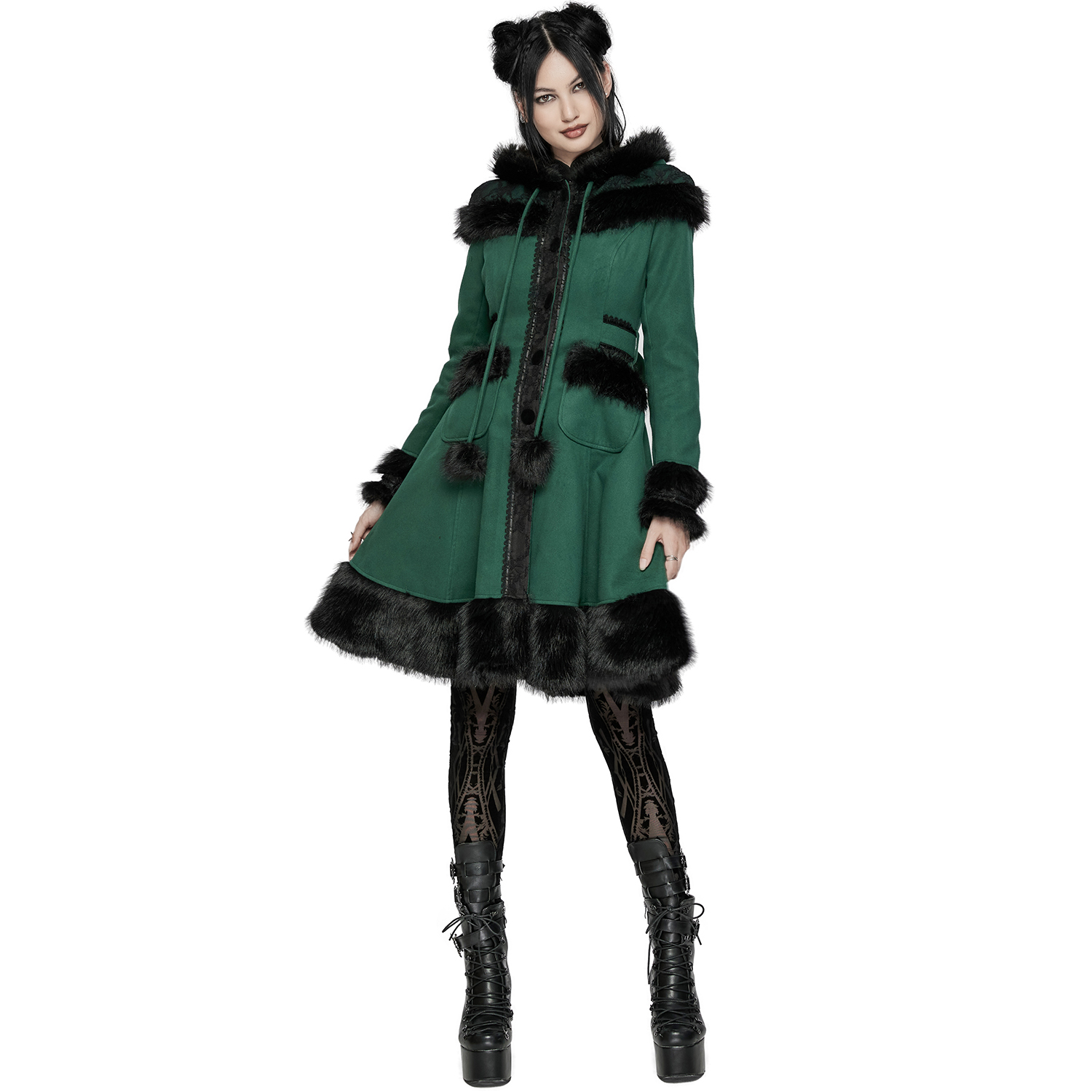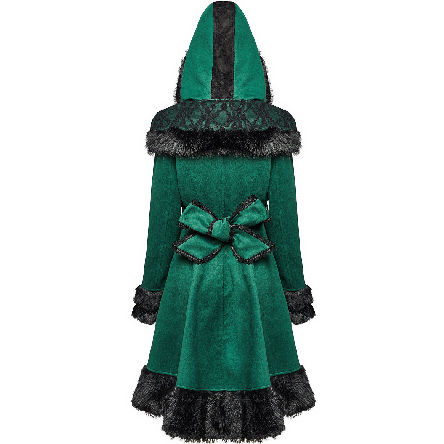 Long manteau de style gothique romantique • En tissu peigné épais et confortable • Doublure constituée de particules de cachemire et coton • Capuche et poignets bordés de fourrure artificielle...