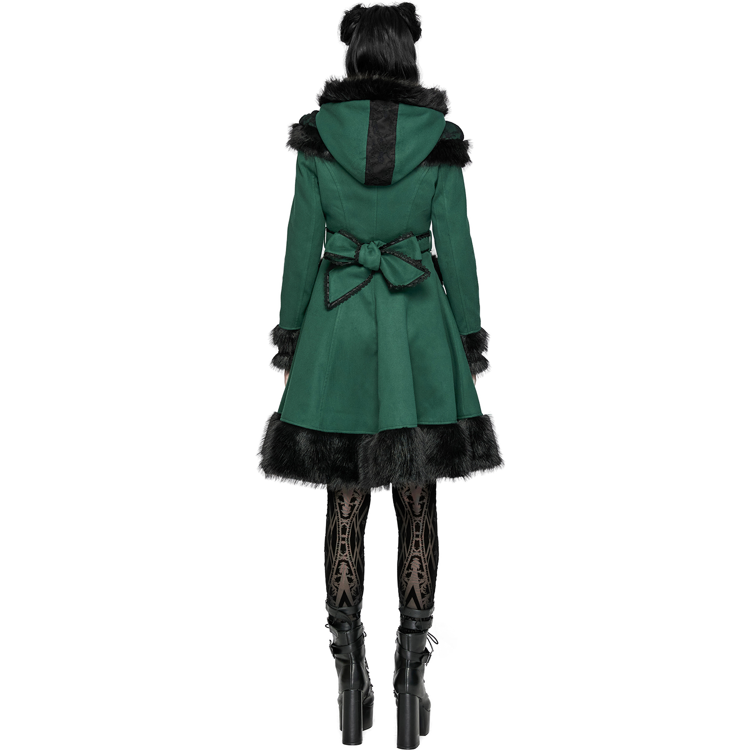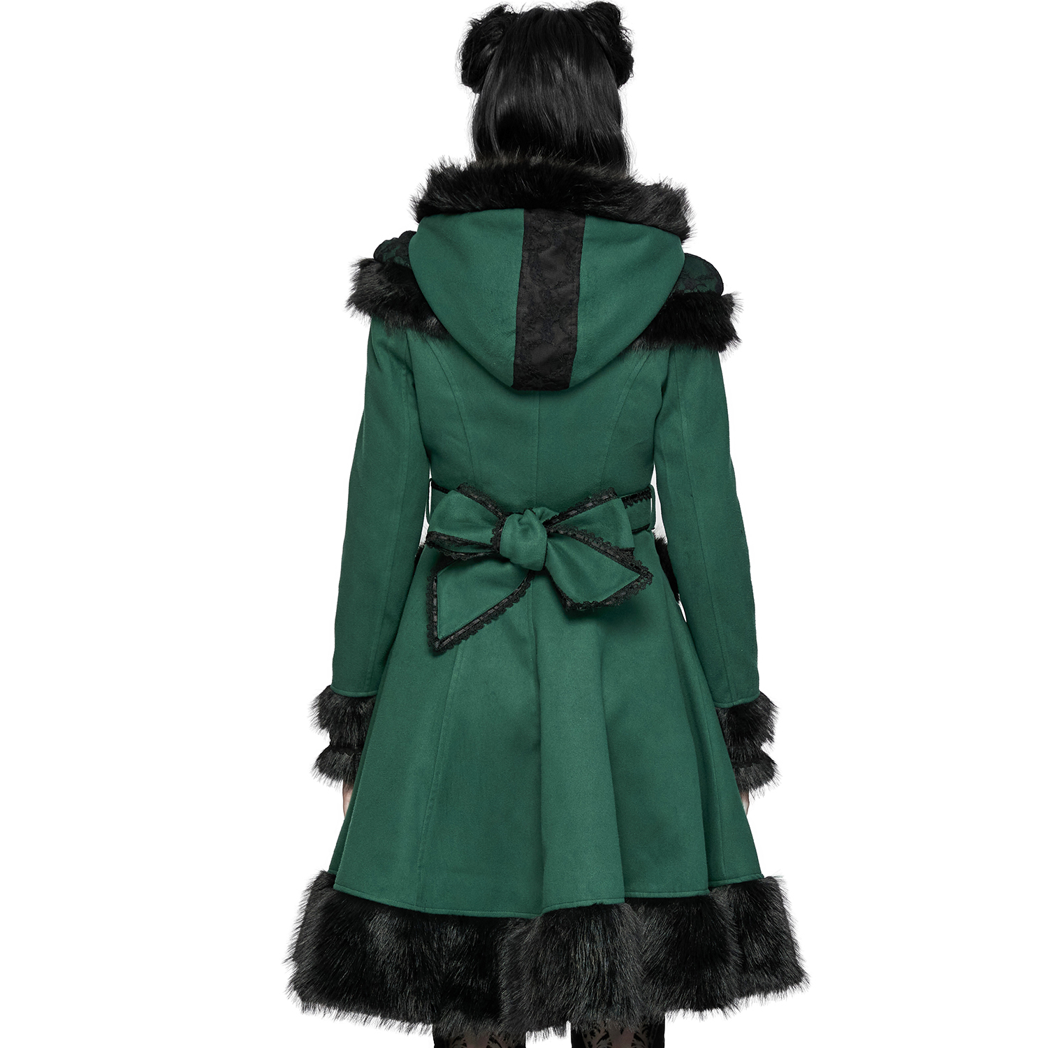 Manteau d'hiver pour femmes de style Gothic Lolita. • En velours noir, doux et luxueux • Garnitures en fourrure synthétique • Ajusté jusqu'aux genoux avec ourlets pointus • Cape...