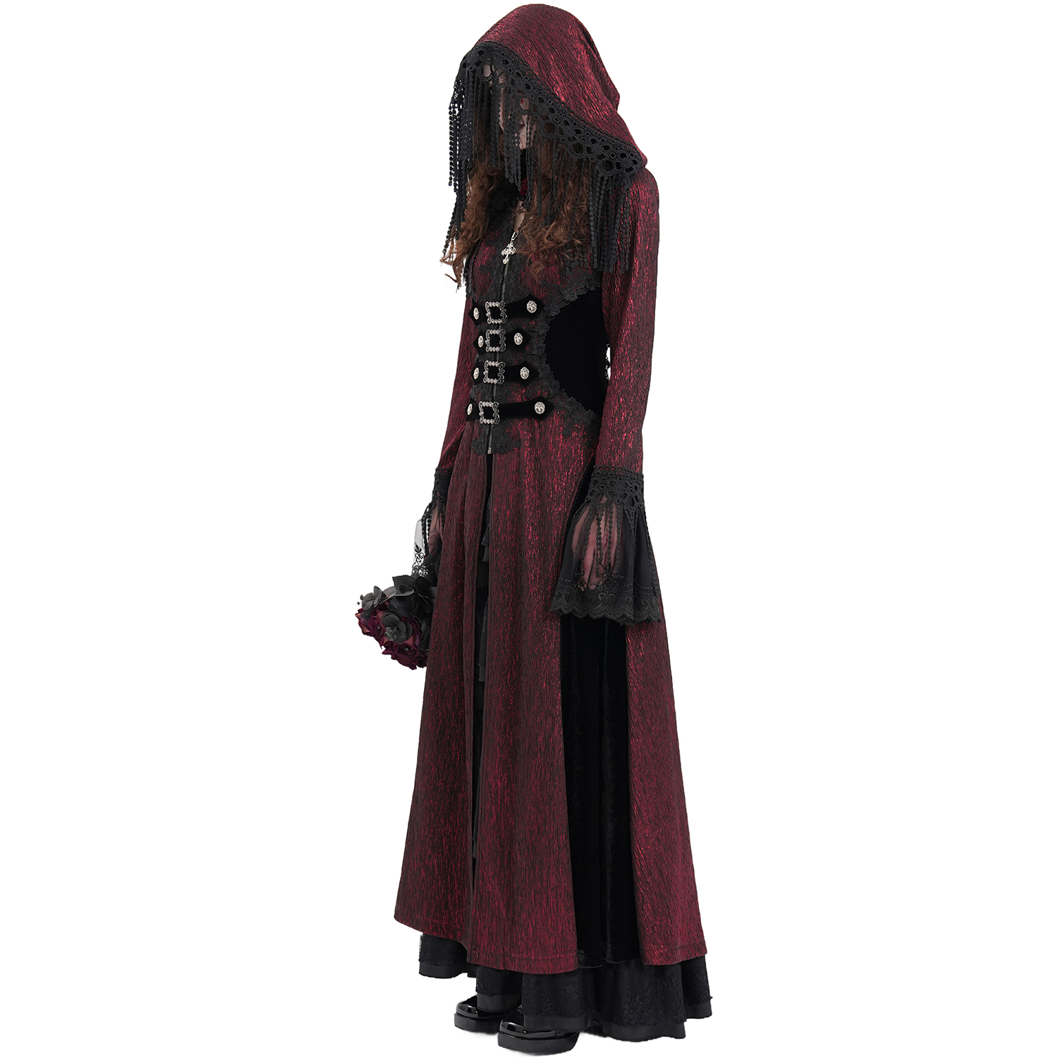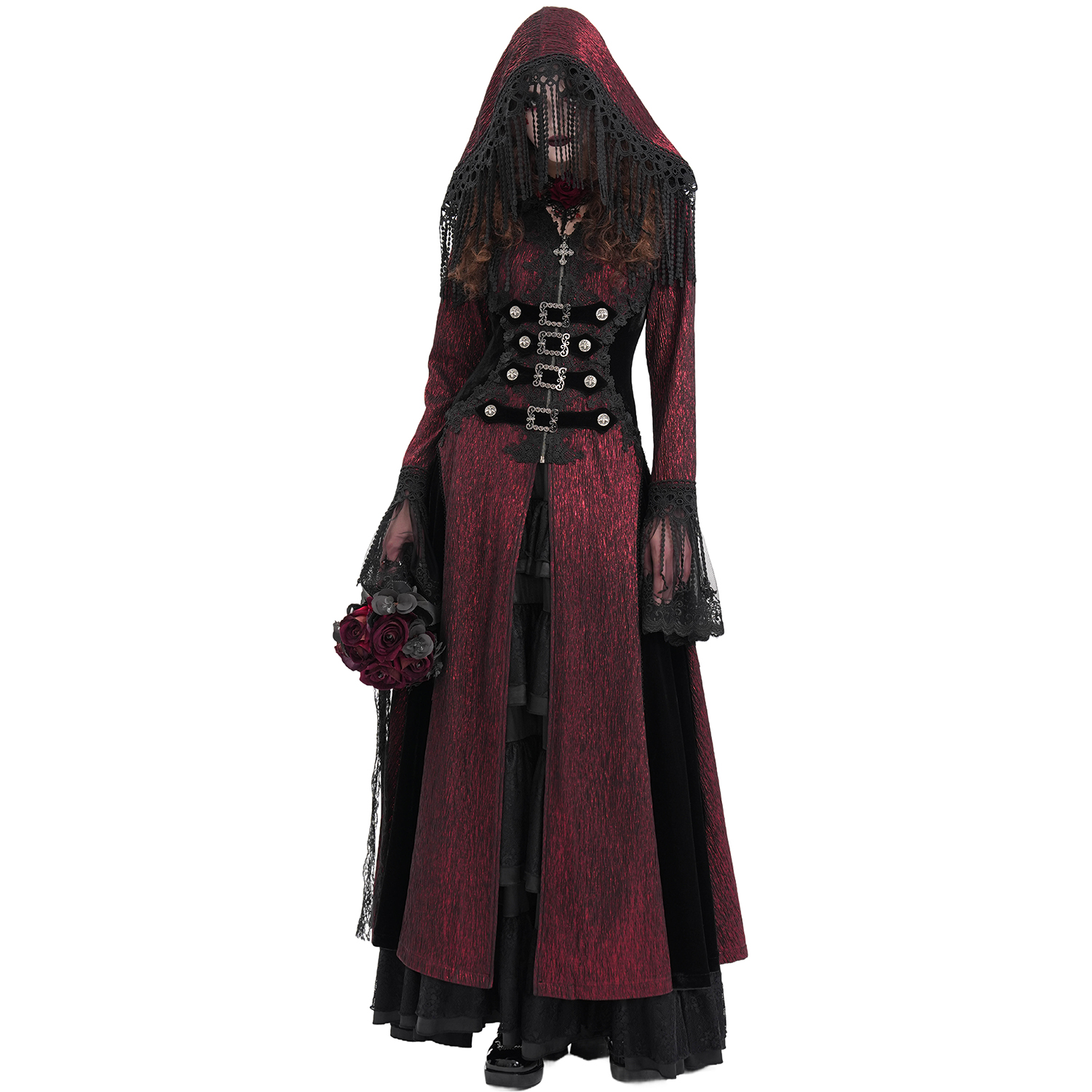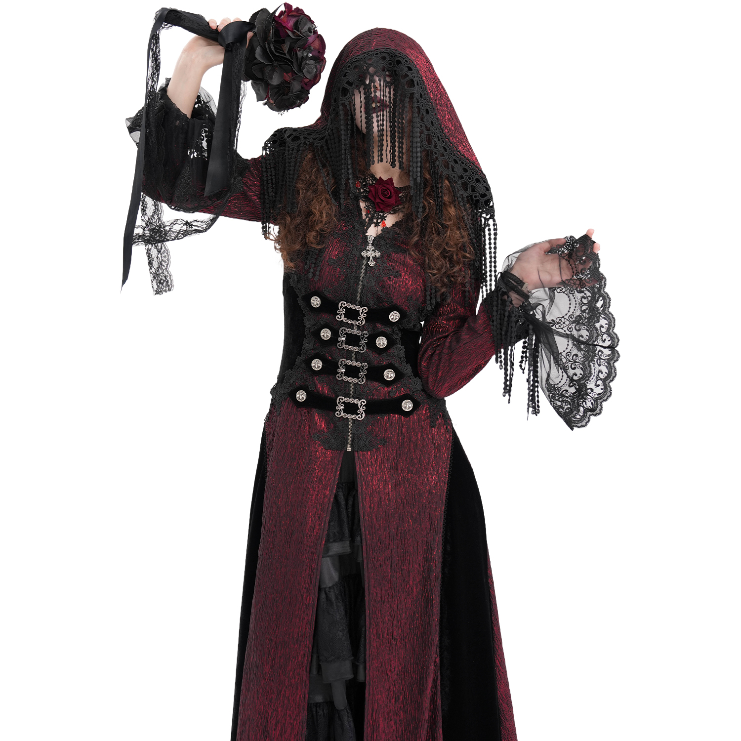 Veste longue à capuche pour femmes de style gothique, idéale pour la mi saison (printemps/automne). • Fabriquée en laine peignée noire avec un matériau de stratification mat • Épaule avec...