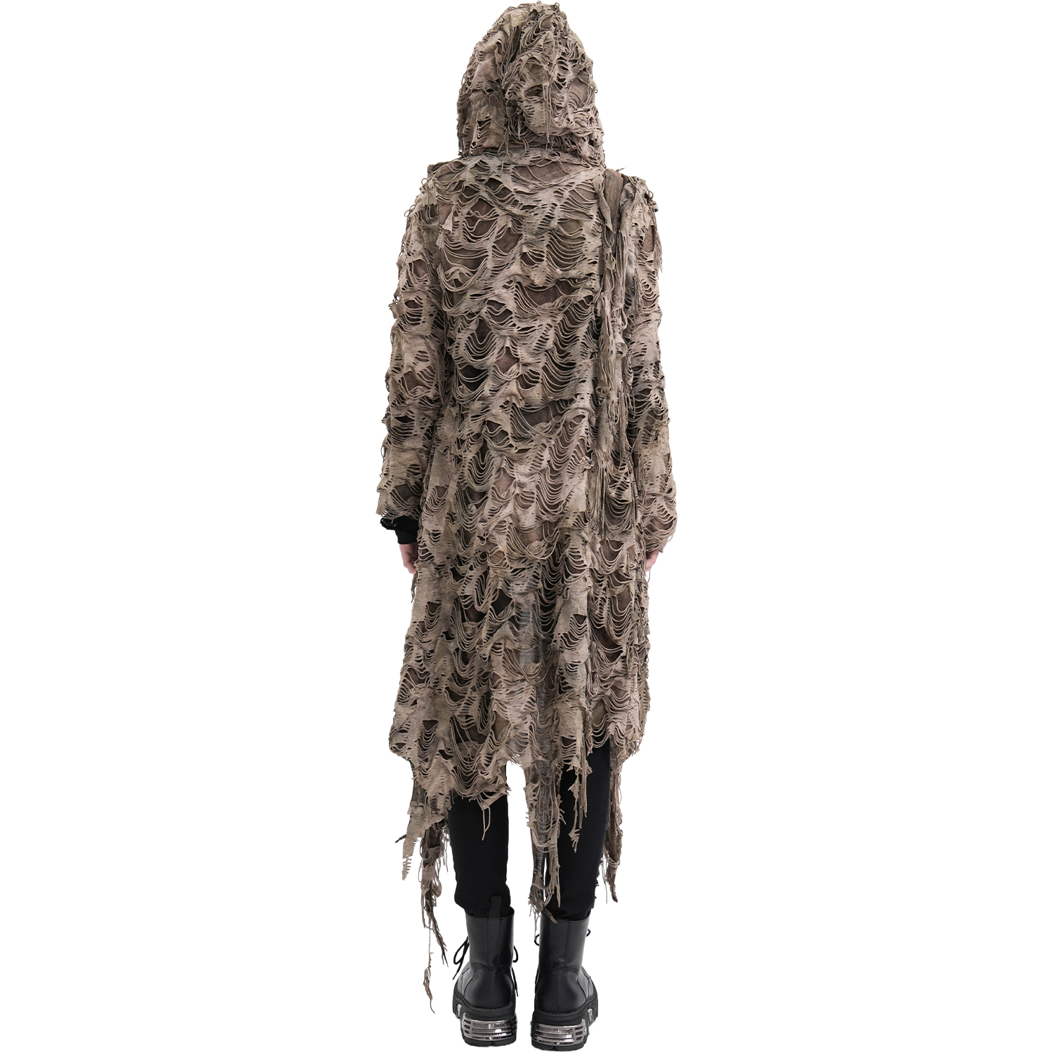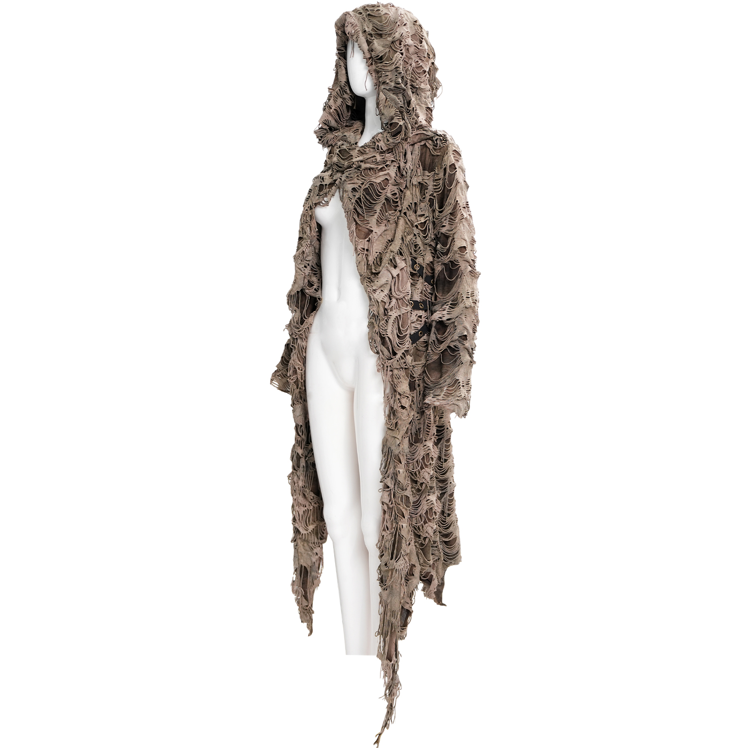 • Long manteau noir et gris • Capuche terminée par de longues franges • Manches longues ornées de dentelle raffinée aux poignets • Boucles et boutons métalliques sur le devant • Fermeture à...