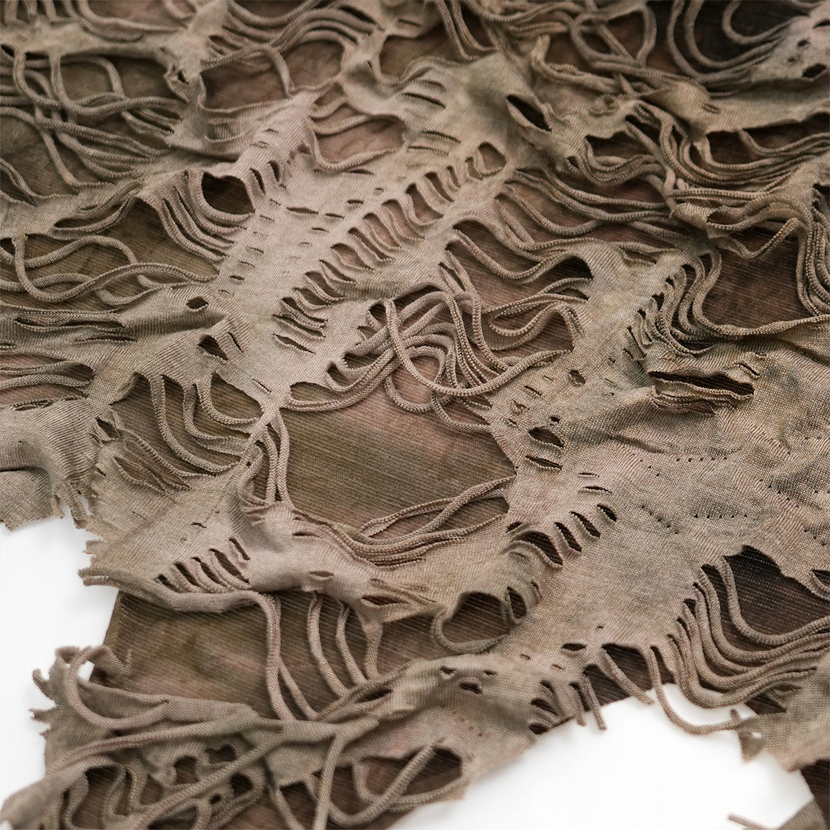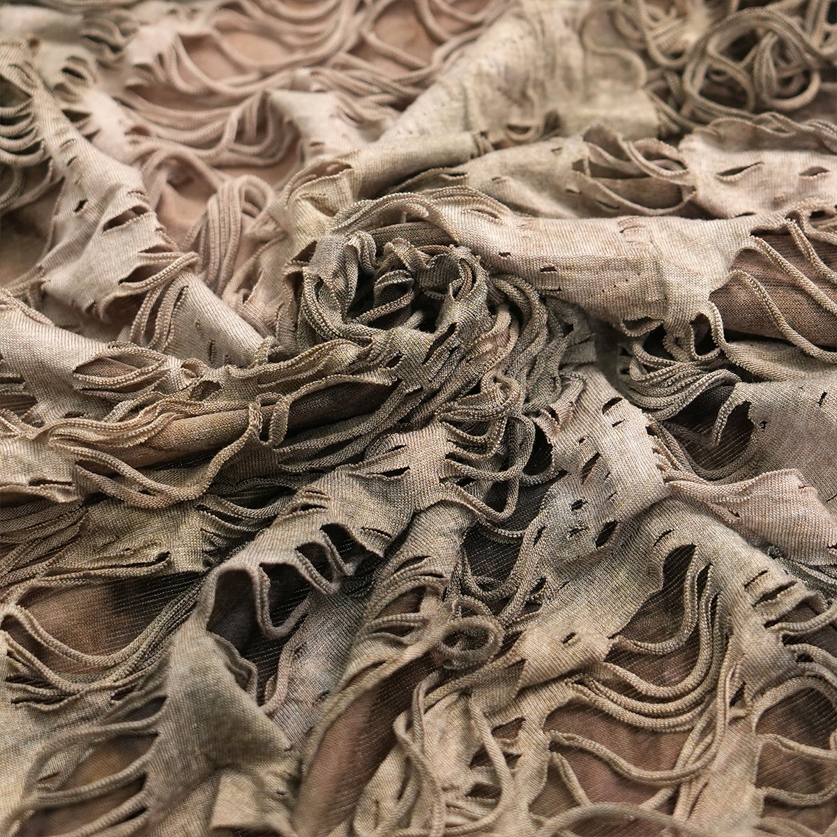 • Entièrement confectionné en maille ajourée et usée, effet vieilli